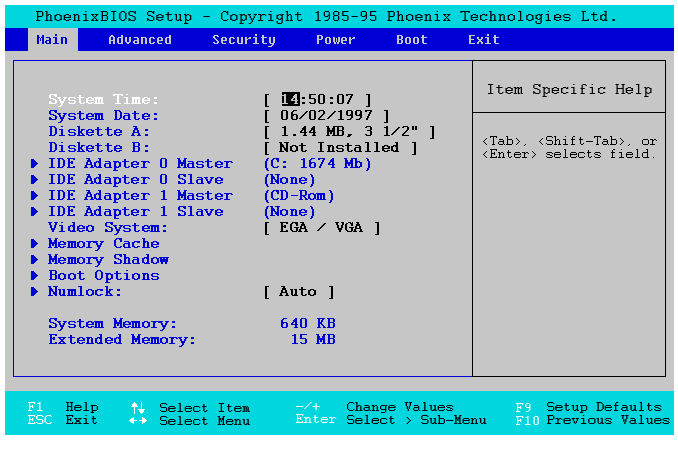 Press <F2> during POST to get into setup. The following setup screens are samples only.