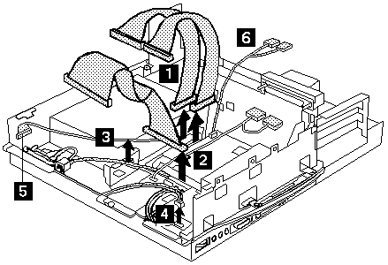 the SCSI cable -2-, the USB cable -5-, the wake-on signal cable -6- and the audio cable -3- then