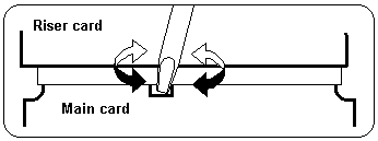 NOTE: In step -2-, use a tool such as a bladed screwdriver to easily disconnect the riser card and main card.