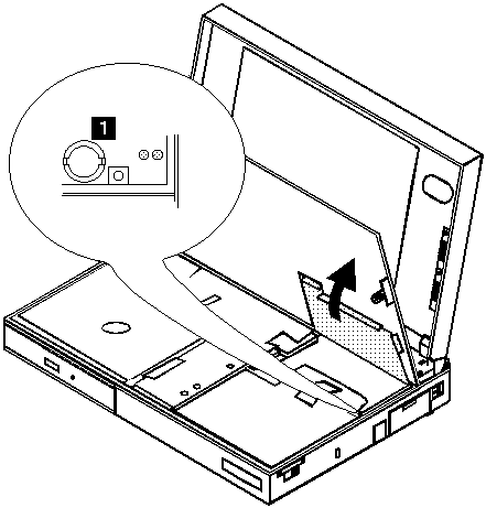 - Locate the backup battery on the system board, shown at 1.