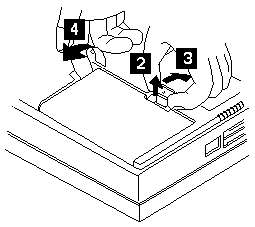 Pull up the battery pack latch 2 , push it back 3 ,