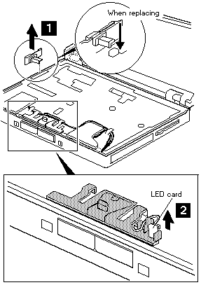 If you have replaced the right lever, open and close it at least twice to ensure that it is seated in the correct position. The right lever must touch the sensor switch correctly. Incorrect placement of the lever can damage the switch, thereby causing the bay LED not to work.