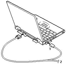At the advanced diagnostic window, connect the USB parallel test cable (P/N 05K2580) to the computer, as shown.
