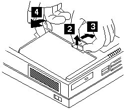 Pull up the battery pack lock -2-, push it back -3-, and then pull up the