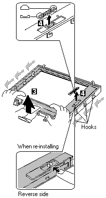 The LCD frontcover has several latches. Release the latches as shown in step -3-.