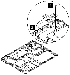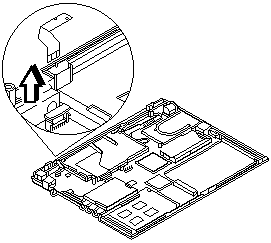 - Disconnect the LED cable, then lift it as shown. (The cable is fixed with double-sided tape.)