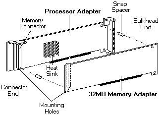 Together the P/390 Processor Card and a P/390 32 MB, or P/390 96 MB Memory Card occupy