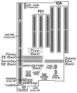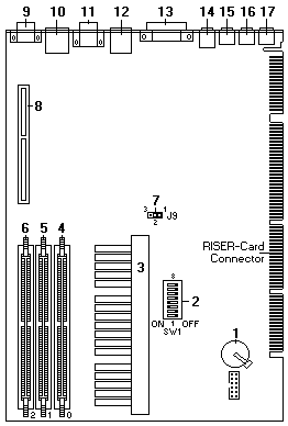 System Board / Riser Card Locations (Netfinity 3000 - Type 8476)