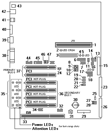 System / Processor - Board Locations (Netfinity 5500-M10 - Type 8661)