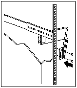 1.  Align the holes on the slide bracket with the cage nuts on the rear mounting rail.